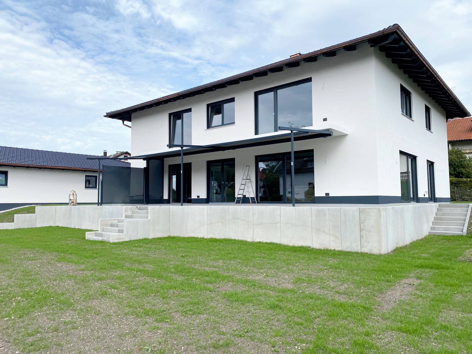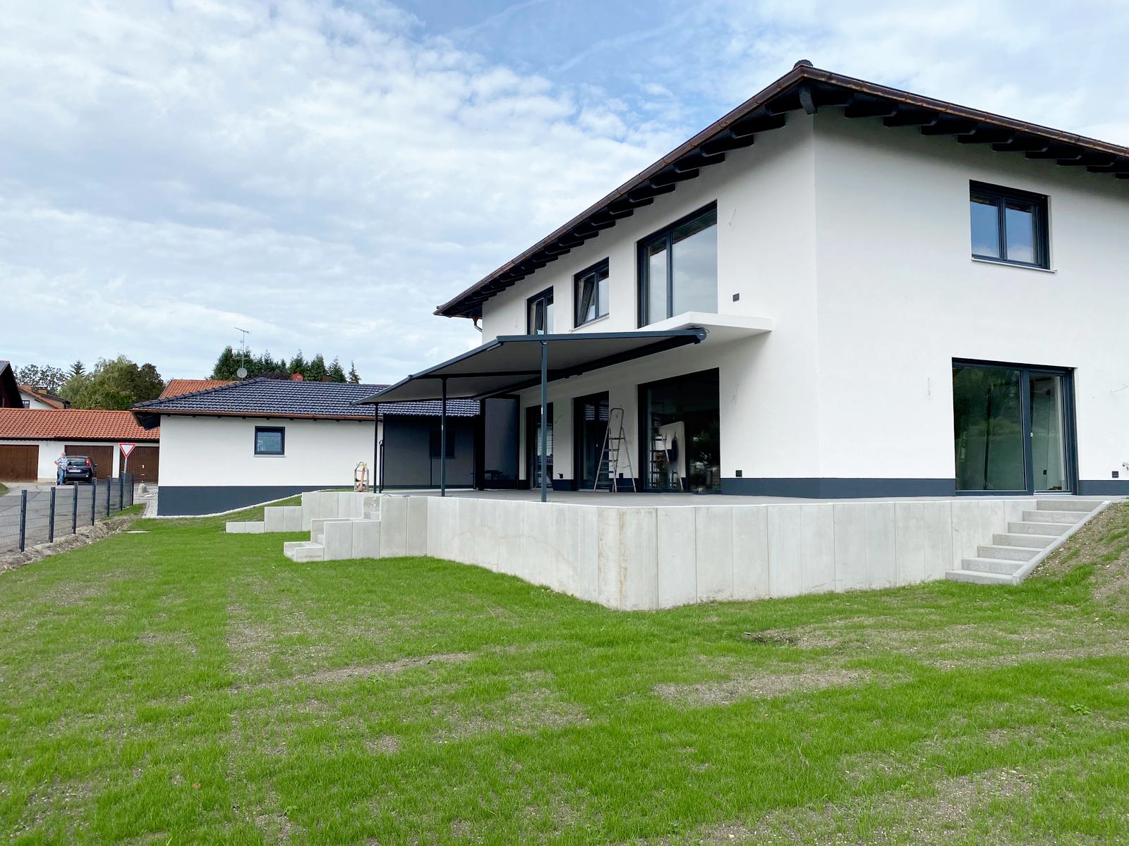 Der sonnige Herbsttag bietet den perfekten Rahmen für die Fertigstellung dieses Projekts. Mit der Warema Perea Pergola-Markise können die glücklichen Bewohner dieses Hauses nun sonnige Tage im Freien verbringen, geschützt vor übermäßiger Hitze oder leichtem Regen.